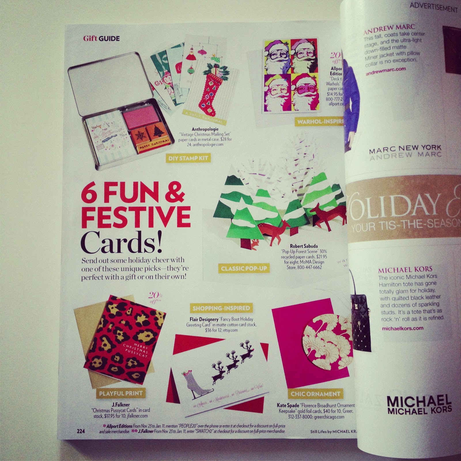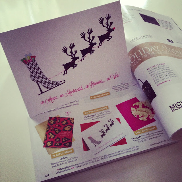 The wednesday before thanksgiving, I ran to Target fingers crossed that it made the issue. My hands were shaking as I found ONE lone copy on the stand and began to flip through. Finally I made it to page 224 and their it was…right next to the Kate Spade holiday card! I was so excited to tell someone that I told a random woman standing next to me. I probably looked like a complete crazy, but I had to tell someone!!!