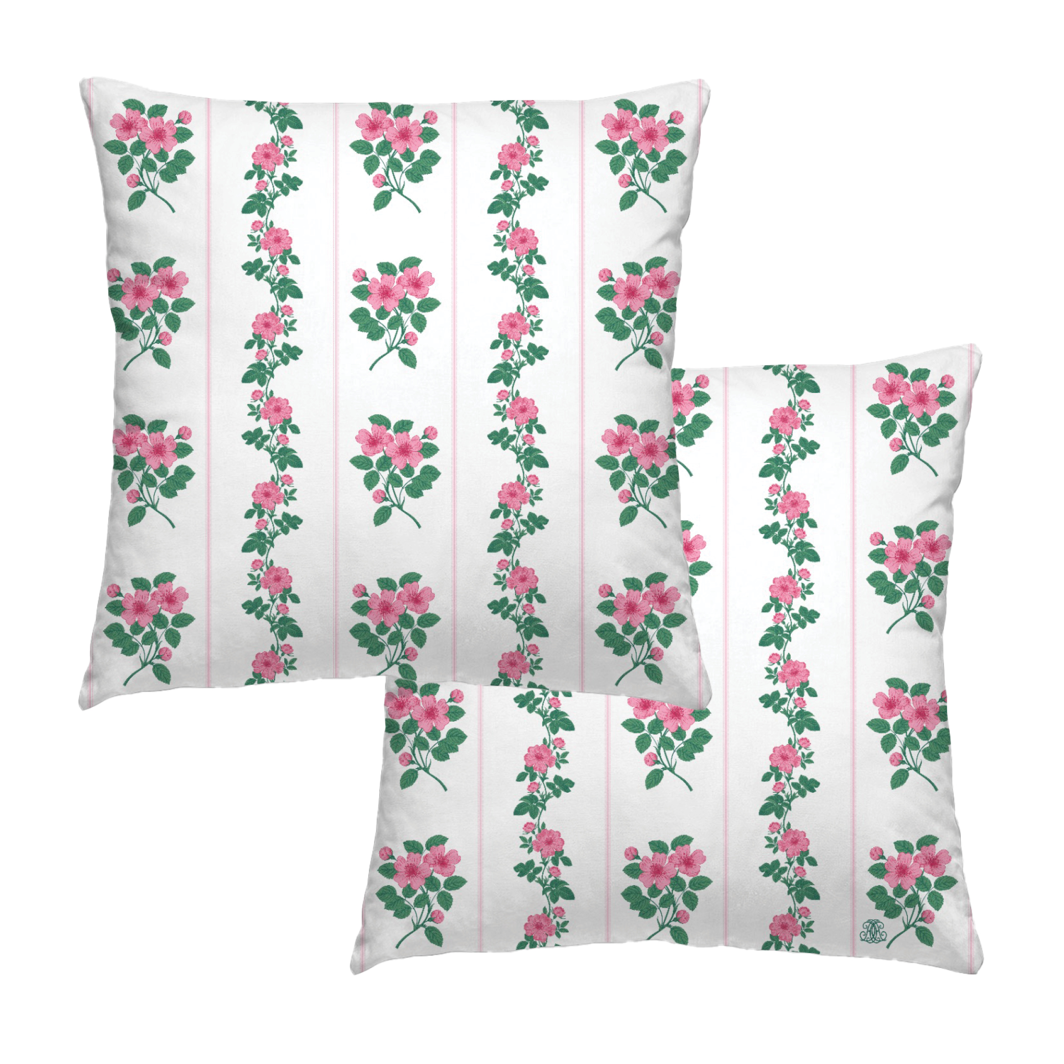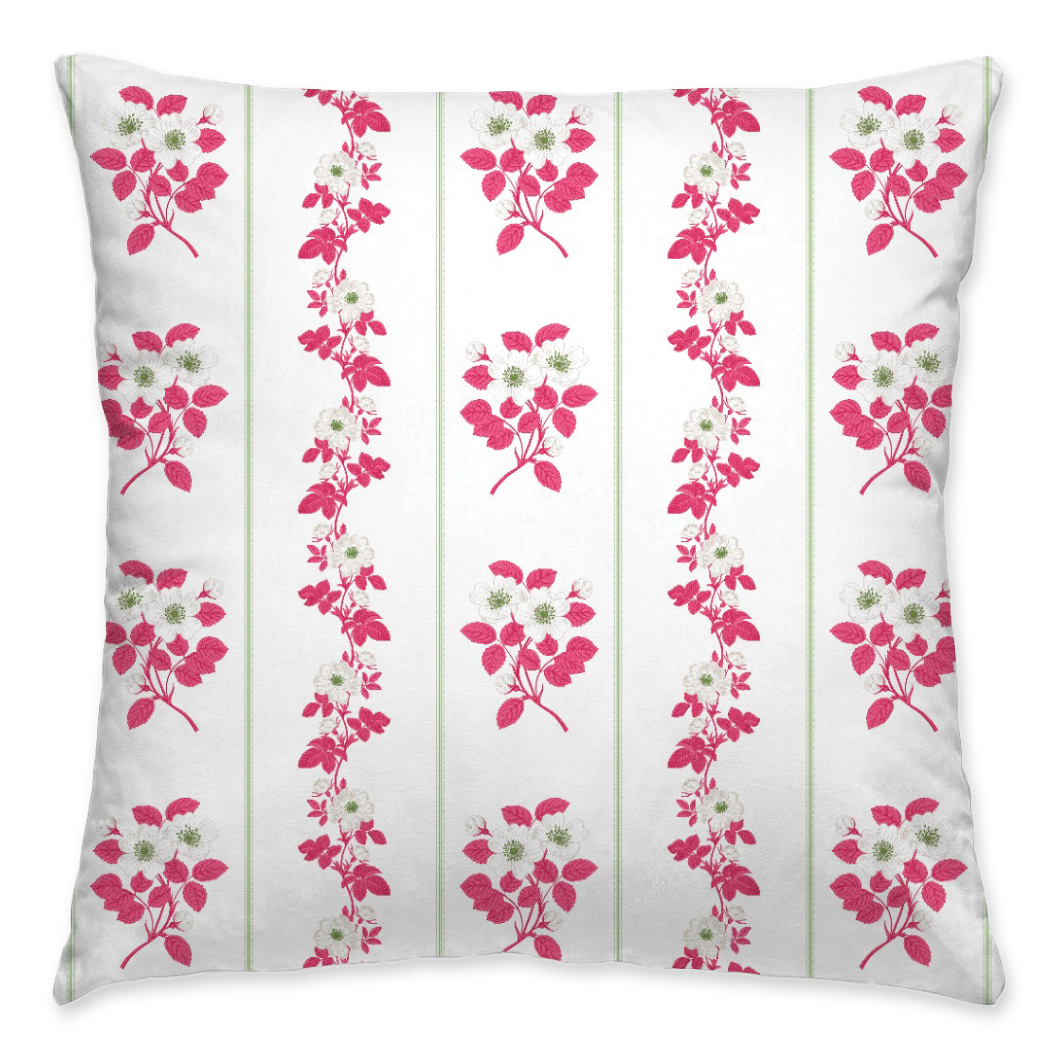 Add a pop of color and flair to your space with our fanciful English Flower Pillow! The lovely floral pattern is offset with both small stripe and polka-dot border.
